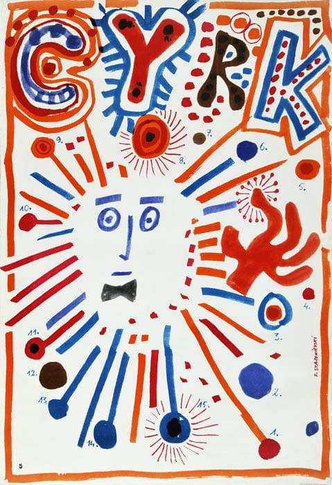 Franciszek Starowieyski (1930 –2009), studiował w ASP w Warszawie, uzyskując w 1955 dyplom. W latach 60. i 70. największe uznanie zdobył jako twórca plakatu. Uprawiał plakat typu autorskiego, o rozpoznawalnym stylu bazującym na zamaszystym i zarazem kaligraficznym rysunku, przede wszystkim zaś zaskakujących, surrealistycznych skojarzeniach.